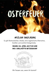 Der Jugendclub Betziesdorf lädt zum Osterfeuer an der Grillhütte ein
