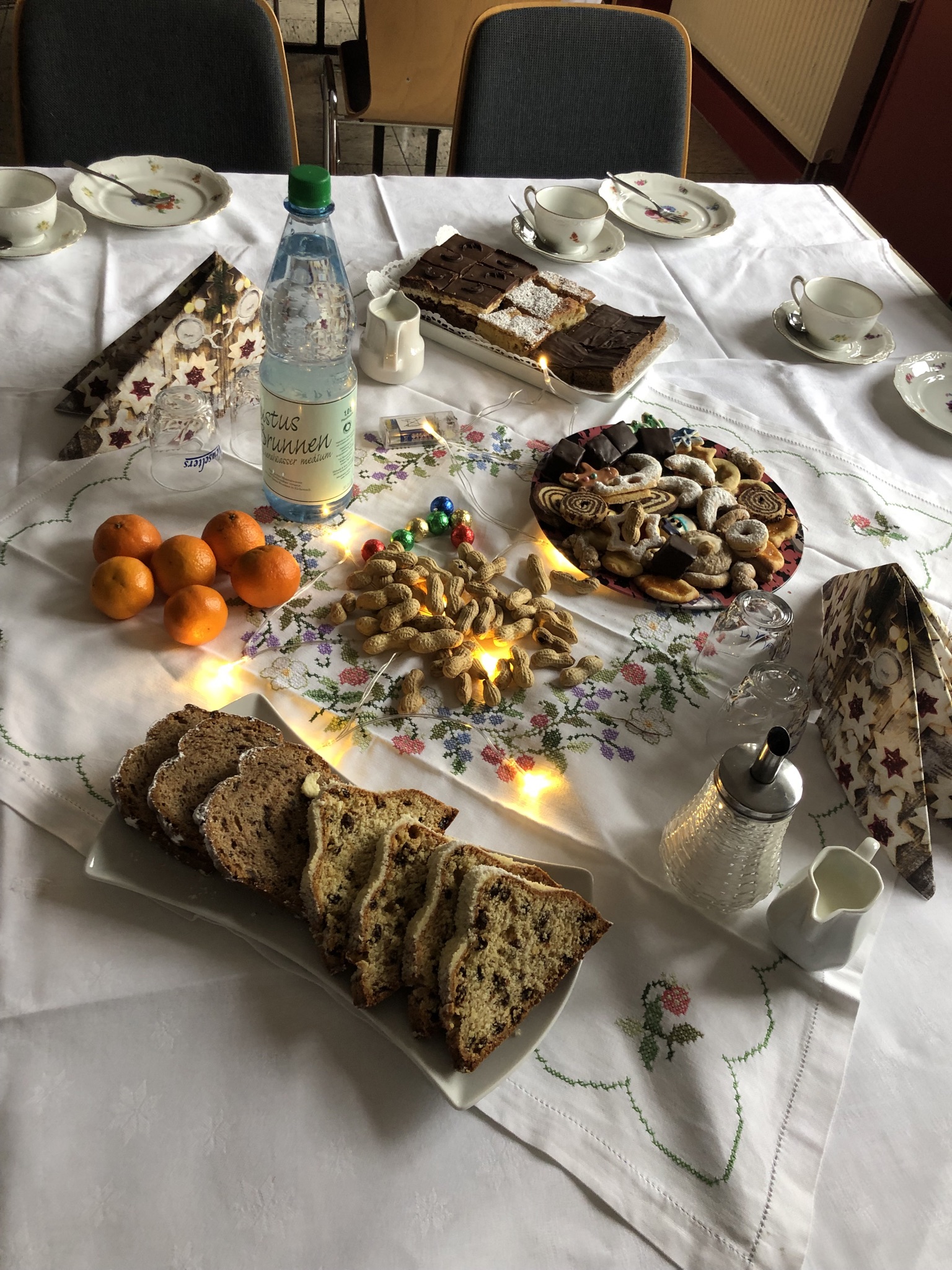 Der Frühstückstreff am Samstagvormittag hat bereits in 2019 großen Anklang gefunden. Somit war klar, dass wir auch bei der Neueröffnung einmal im Monat dieses Angebot weiterführen möchten. In 2024 wird dieser im monatlichen Wechsel mit einem Mittagstisch angeboten. In diesem Jahr haben wir am 9. Dezember mit einem Adventskaffee begonnen. Bei selbstgebackenem Kuchen und Plätzchen konnten die Besucher sich austauschen, Weihnachtslieder singen und auch der Nikolaus hat auf seiner Rundreise kurz bei uns reingeschaut.