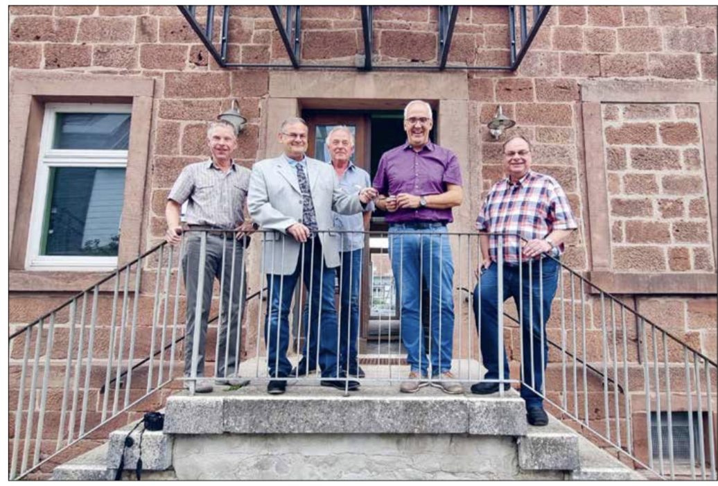 Fröhliche Gesichter bei der Vertragsunterzeichnung (von links): Ortsvorsteher Dieter Tourte, Jörg Dreer und Hermann Wienholt (Vorsitzender und stv. Vorsitzender des Heimatvereins) sowie Bürgermeister Olaf Hausmann und Stadtrat Konrad Hankel