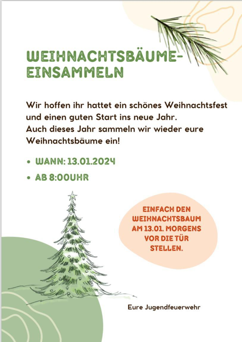 « Alle Veranstaltungen Diese Veranstaltung hat bereits stattgefunden. Einsammeln der Weihnachtsbäume durch die Feuerwehr Betziesdorf 13. Januar 2024 « Glühwein-Party am Jugendclub Betziesdorf Gemeinsames Frühstück im Multifunktionalen Haus » Zum Kalender hinzufügen Google Kalender iCalendar Outlook 365 Outlook Live Details Datum: 13. Januar 2024