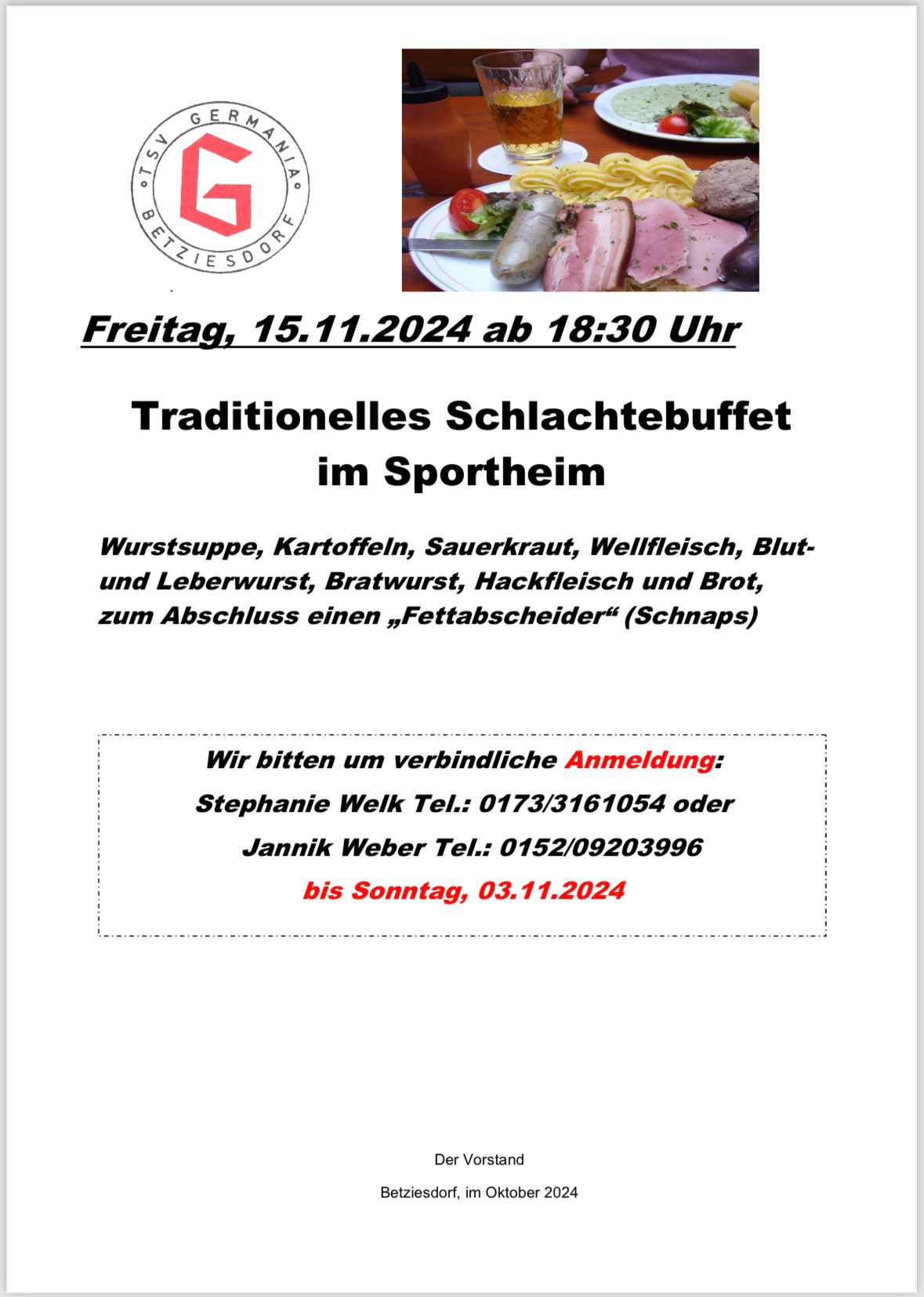 « Alle Veranstaltungen Diese Veranstaltung hat bereits stattgefunden. Schlachteessen des TSV Betziesdorf 15. November 2024 ab 18:30 « Beratungstermin zum Nahwärmenetz Betziesdorf Spieleabend im Multifunktionalen Haus » Zum Kalender hinzufügen Google Kalender iCalendar Outlook 365 Outlook Live Details Datum: 15. November 2024 Zeit: 18:30 Veranstaltungsort Sportheim Veranstalter TSV Germania Betziesdorf