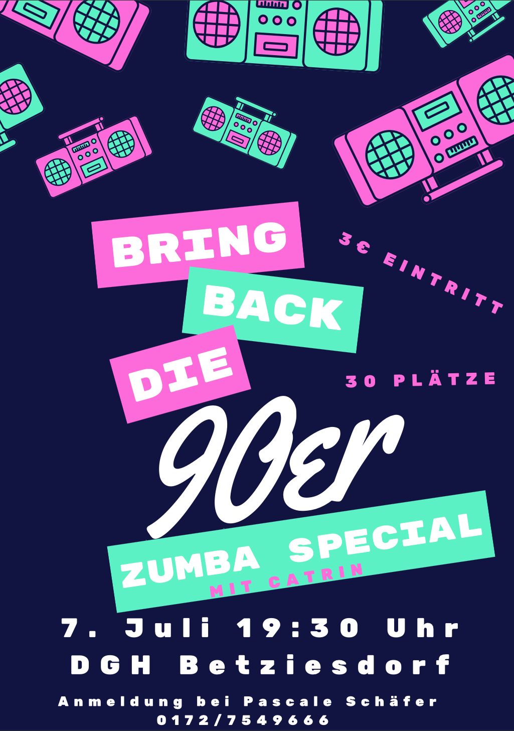 « Alle Veranstaltungen Diese Veranstaltung hat bereits stattgefunden. ZUMBA 90er Spezial 7. Juli 2025 ab 19:30 « Gemeinsames Frühstück Fahrt nach Plomelin » Zum Kalender hinzufügen Google Kalender iCalendar Outlook 365 Outlook Live Details Datum: 7. Juli 2025 Zeit: 19:30 Veranstaltungsort Dorfgemeinschaftshaus Betziesdorf